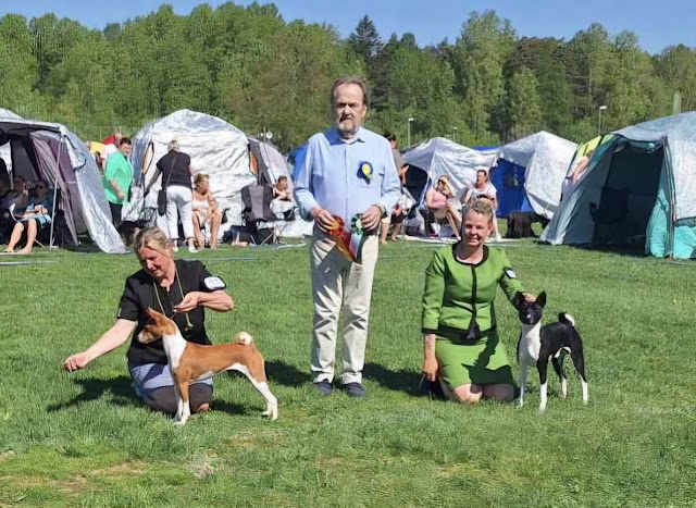 Det är ungefär 50 basenjis på plats som ger järnet på en raka efter släpharen. Hundarna springer två gånger och sedan räknas det ut en snitttid och vinnare koras i valp, rookie, öppen samt veteran. I år var det en mycket varm dag och både Sivan och Hera sprang så det stod härligt till. Hera gjorde även en kullebyta i målgång då hon är så himla taggad efter trasan.